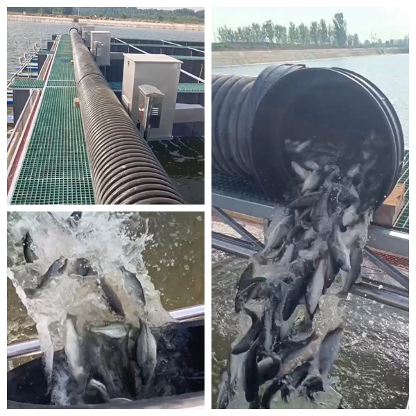 “跑道”两端与外塘相接,外塘作为水质净化修复区,放养了鲢鱼、鳙鱼、河蚌等滤食性品种;同时种植铜钱草等具有净化水质作用的水生植物。只要开启推水系统,池塘里的水就能24小时循环流动,实现活水养鱼。鱼类的排泄物和饲料残渣则由吸污器集纳,经处理变成有机肥。养殖尾水基本做到“零排放”,净化完毕再被循环利用。“跑道养鱼”不仅经济效益高,还为生态增绿。